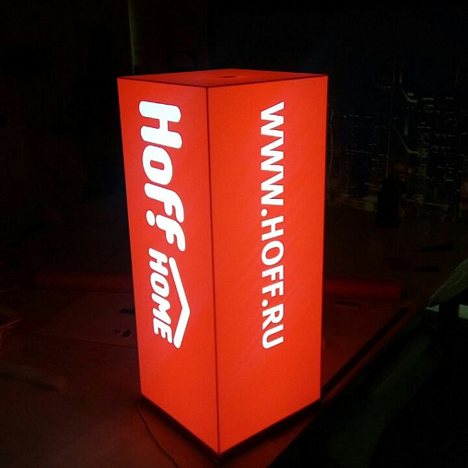 - Лайтбокс усиливает визуальную навигацию внутри торгового зала и акцентирует брендовый блок.