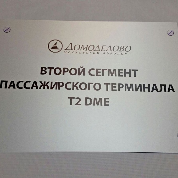 Рекламно-производственная компания «Авторгрупп» выполнила заказ на изготовление навигационных указателей для аэропорта Домодедово. Качественная табличка с обозначением второго сегмента пассажирского терминала T2 DME соответствует высоким стандартам аэропортовой инфраструктуры и обеспечивает четкую ориентацию пассажиров.