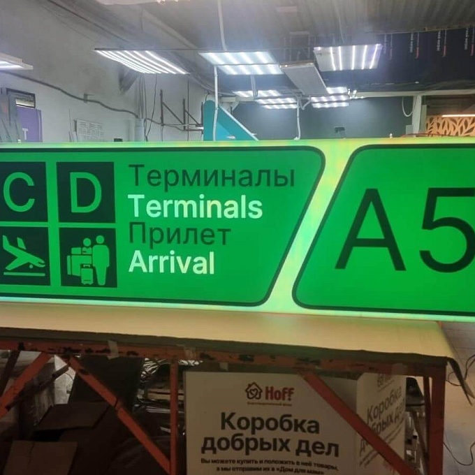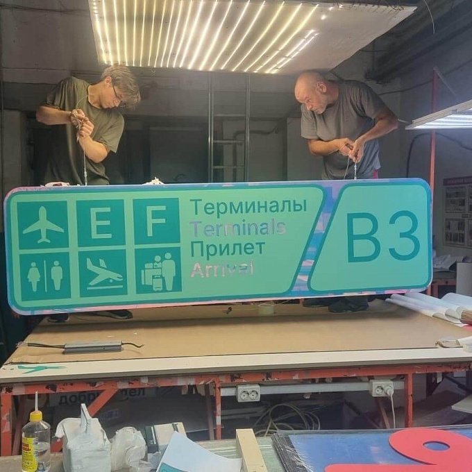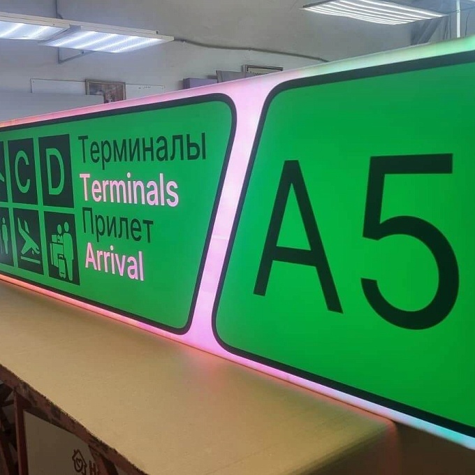 Проект: разработка и изготовление световой навигационной вывески для внутренних помещений аэропорта.