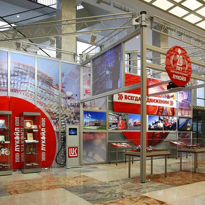 Результатом стал стенд, который не просто демонстрирует корпоративный образ Лукойл, но и создает комфортное пространство для общения, презентаций и профессионального взаимодействия с гостями мероприятия. Такое решение помогает бренду уверенно представлять свои решения и укреплять деловые связи в рамках значимых событий.