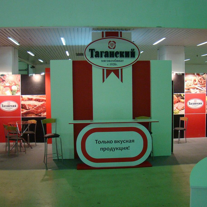 В результате получился практичный выставочный стенд, который помог мясокомбинату «Таганский» комфортно работать с посетителями, презентовать продукцию и устанавливать деловые контакты в рамках профессионального мероприятия.
