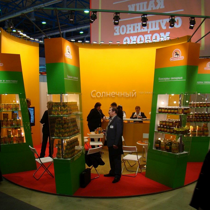 Проект стенда был направлен на создание визуально привлекательной экспозиции, которая не только подчеркнула уникальность бренда «Солнечный», но и обеспечила удобное пространство для взаимодействия с профессиональной аудиторией.